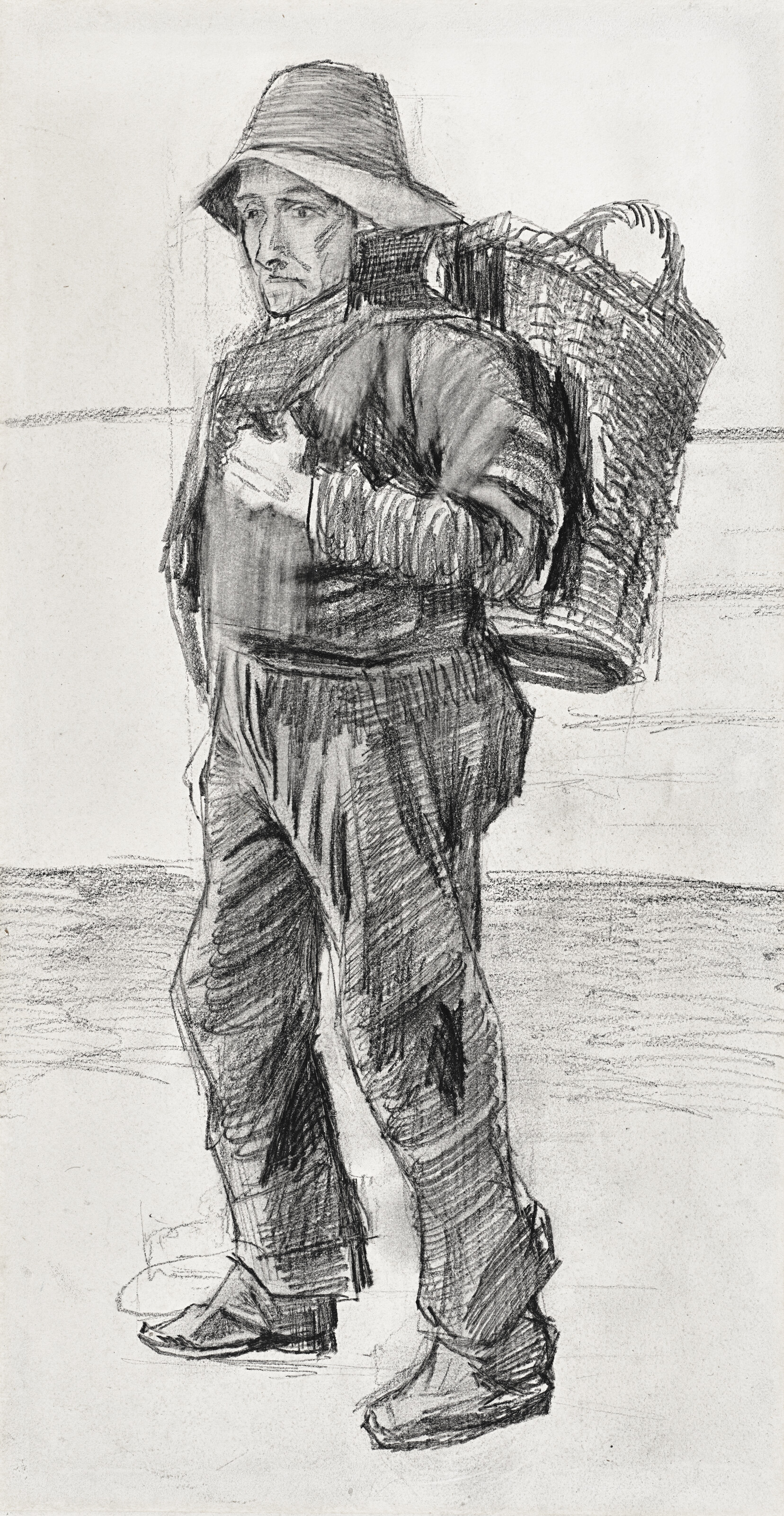 Vincent Van Gogh (1853-1890), Visser met een Mand op zijn Rug (Fisherman with Basket on his Back), drawn in the Hague in January-February 1883. Pencil on paper. 18½ x 9⅞ in (46.7 x 25.3 cm). Estimate: $400,000-600,000. Offered in Impressionist and Modern Works on Paper Sale on 18 November 2025 at Christie’s in New York