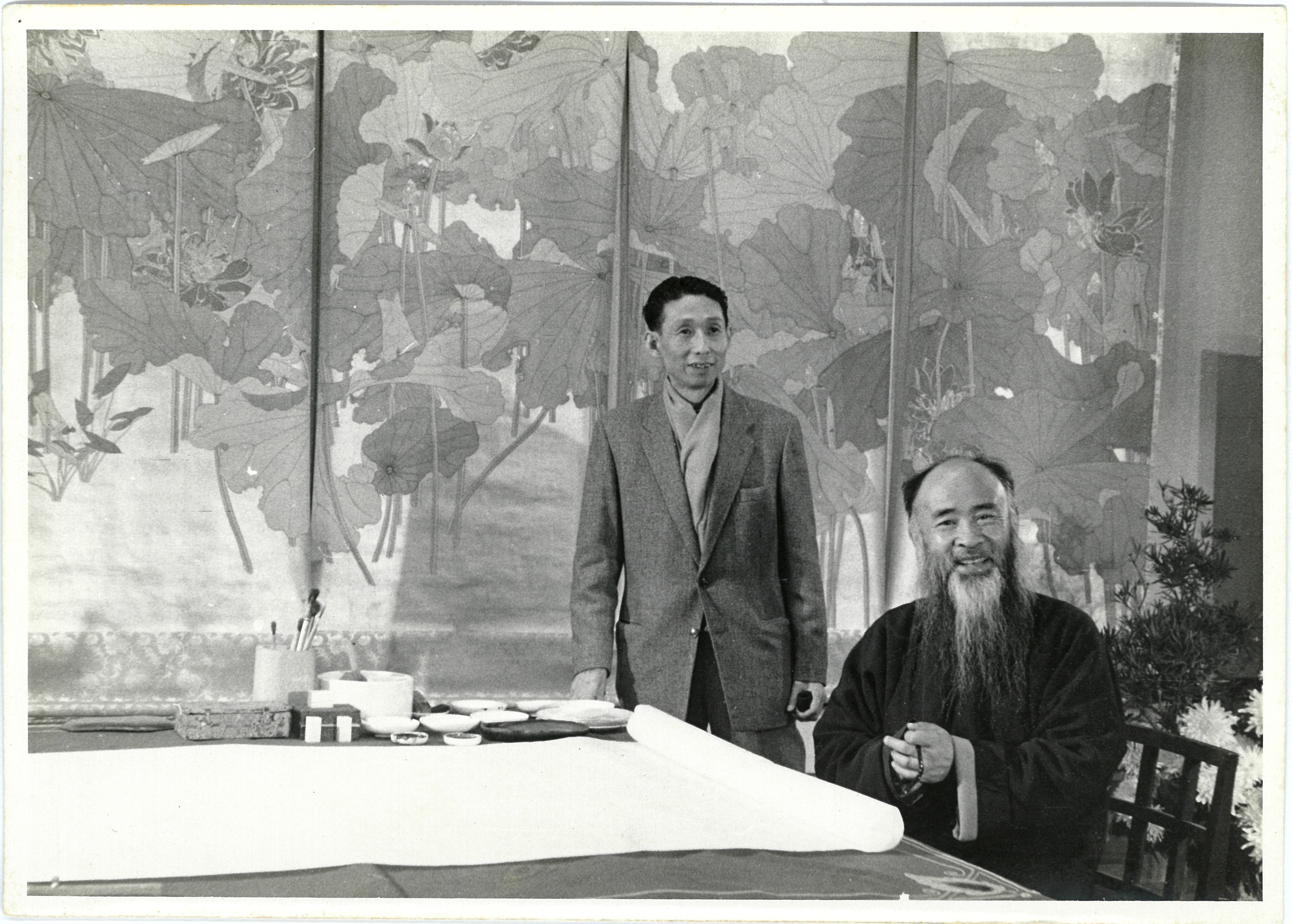 朱旭华(左)与张大千(右)在拍摄现场留影