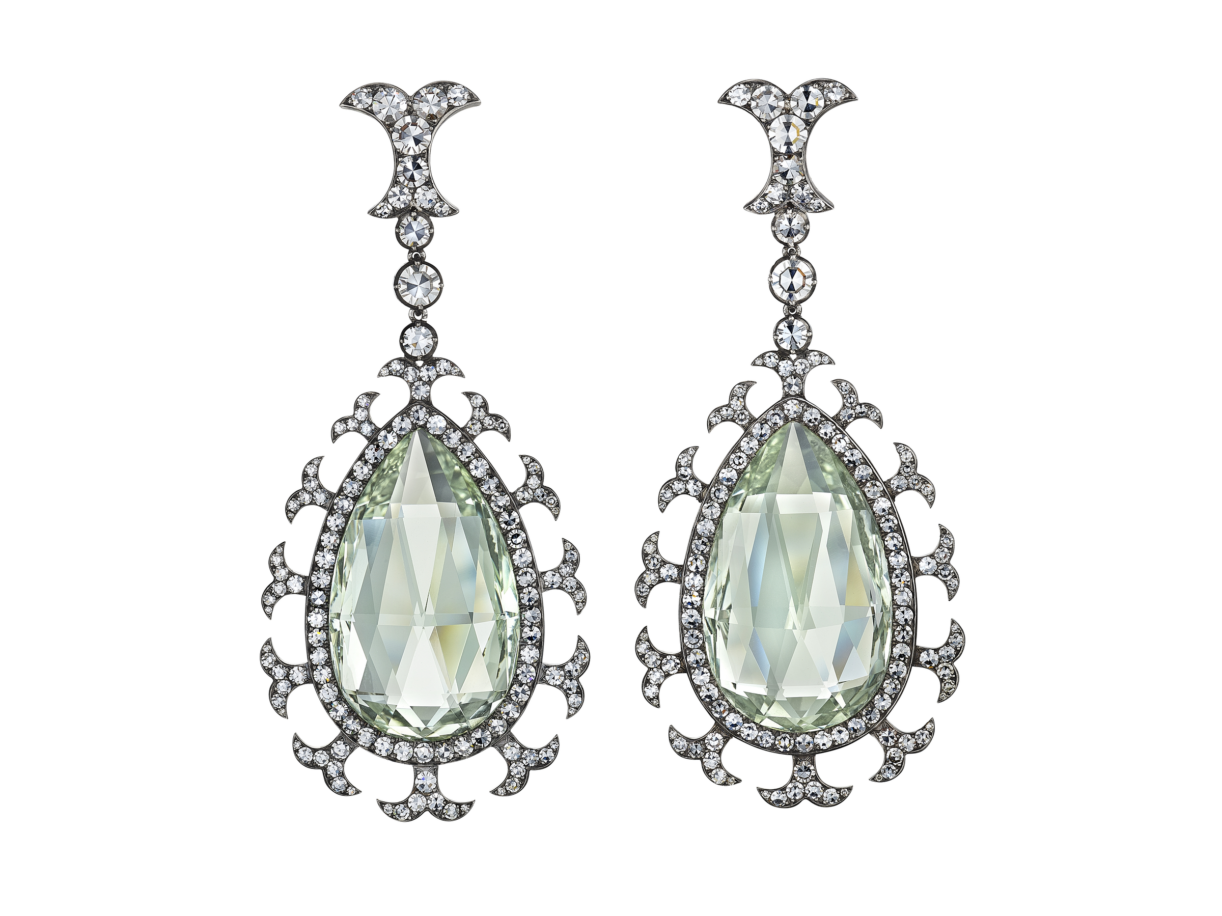 綠色綠柱石及鑽石吊墜耳環,JAR設計。此拍品於2025年6月17日在佳士得紐約售出,成交價美元 302,400