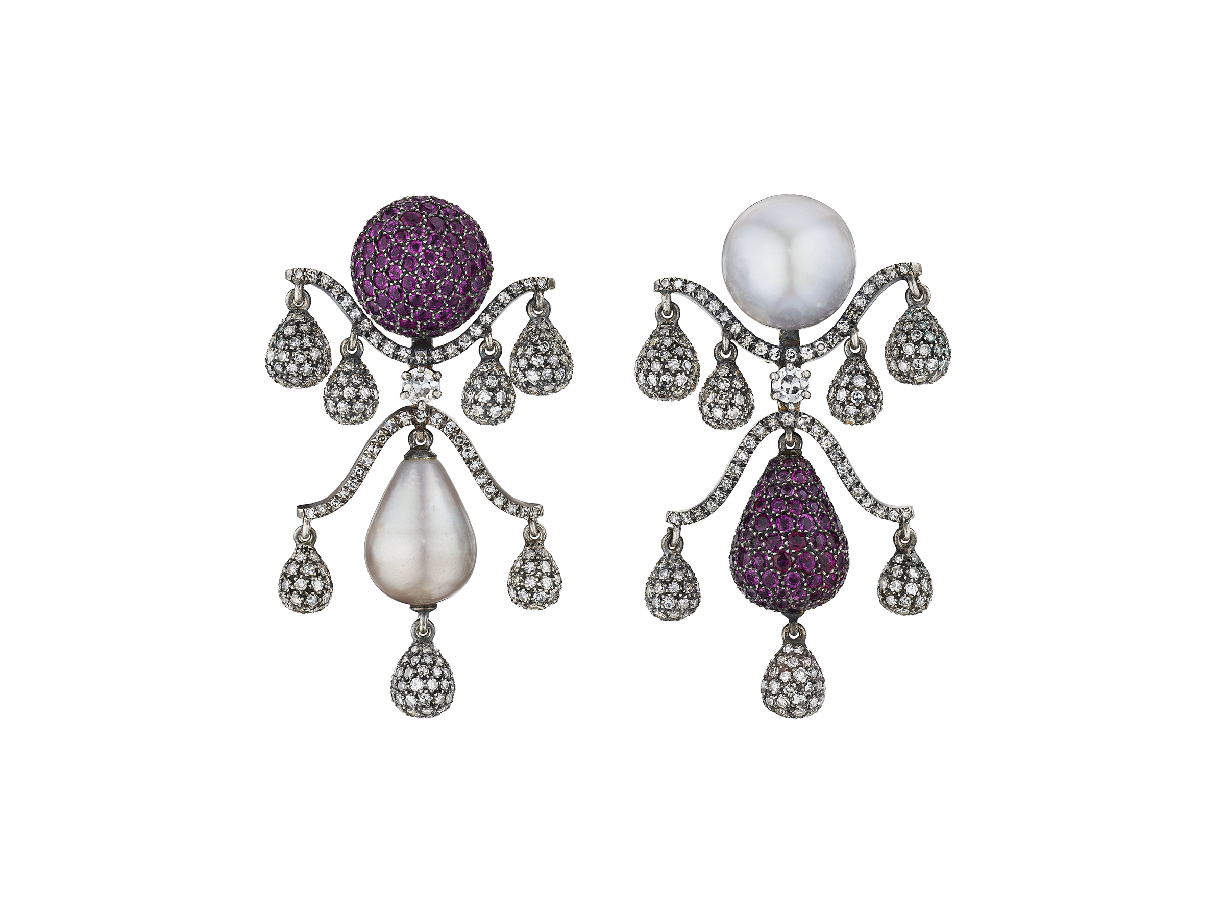 天然珍珠,紅寶石及鑽石耳環,JAR設計。此拍品於2025年6月17日在佳士得紐約售出,成交價美元 403,200