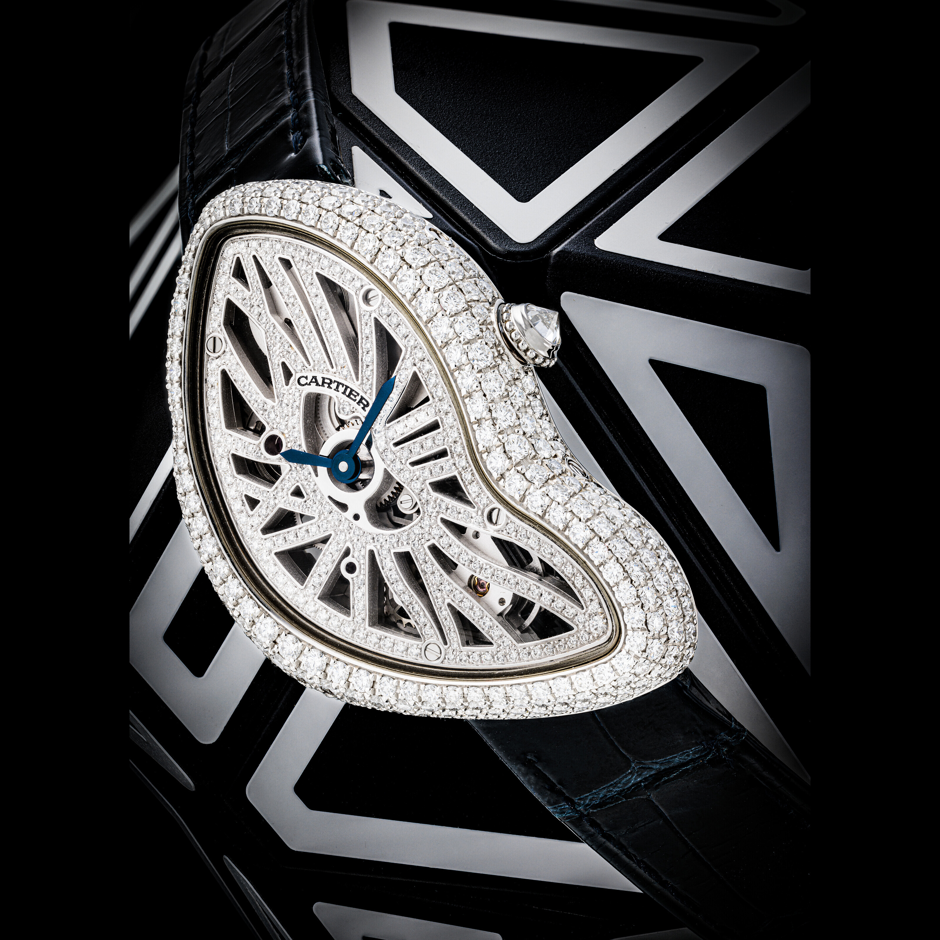 Additional innovations include enamel dials, sapphire cabochon crowns and high-polish or brushed metal bracelets. Cartier has also released versions with mother-of-pearl dials and diamond embellishments, reinforcing the Crash’s versatility across styles and generations.