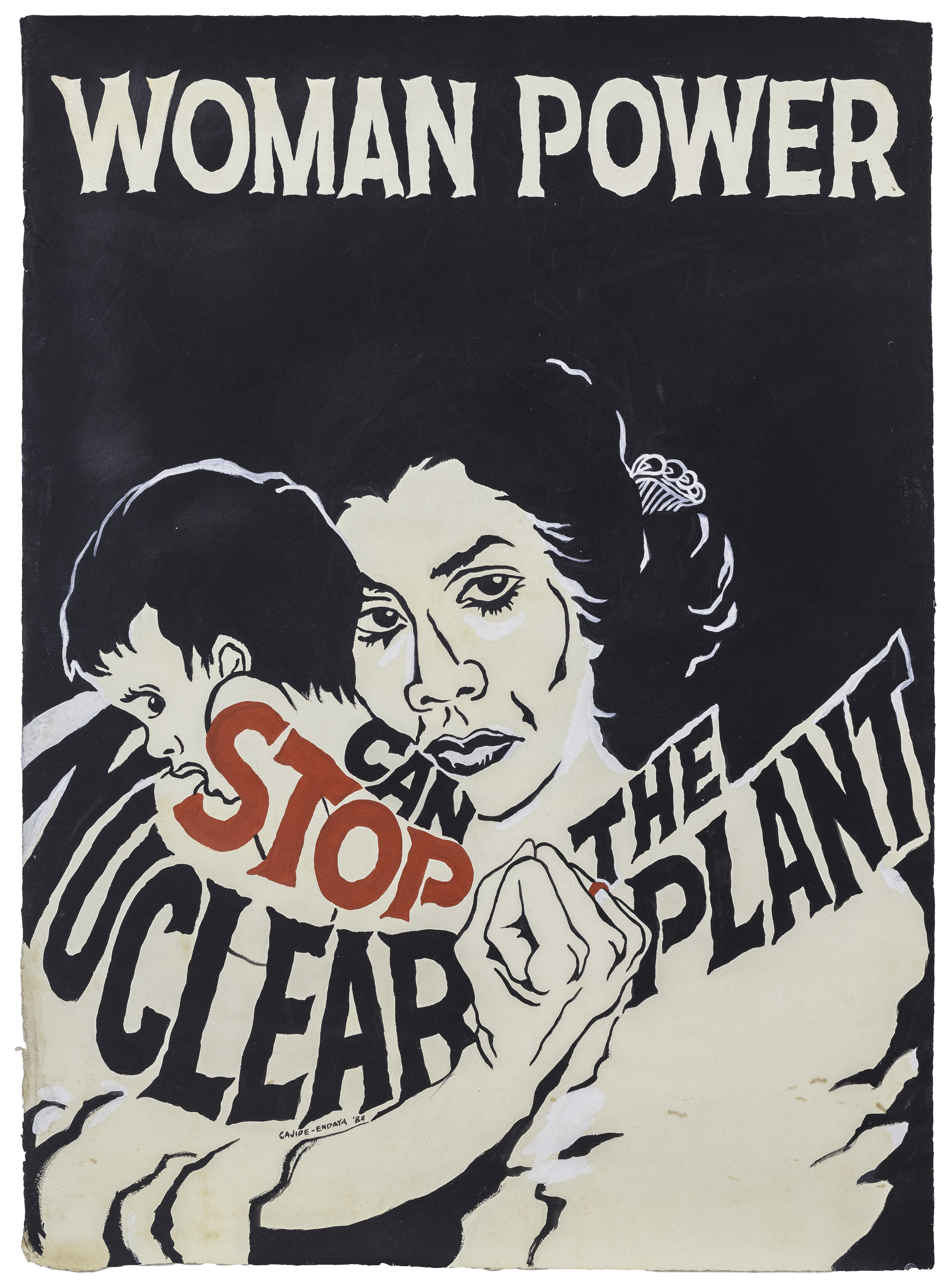 伊梅爾達·卡希佩·恩達亞,《 Woman Power/Stop Nuclear Plant 》 ,1984年作。蛋彩、水彩紙本,76 x 55.5公分。藝術家收藏。新加坡國家美術館藏