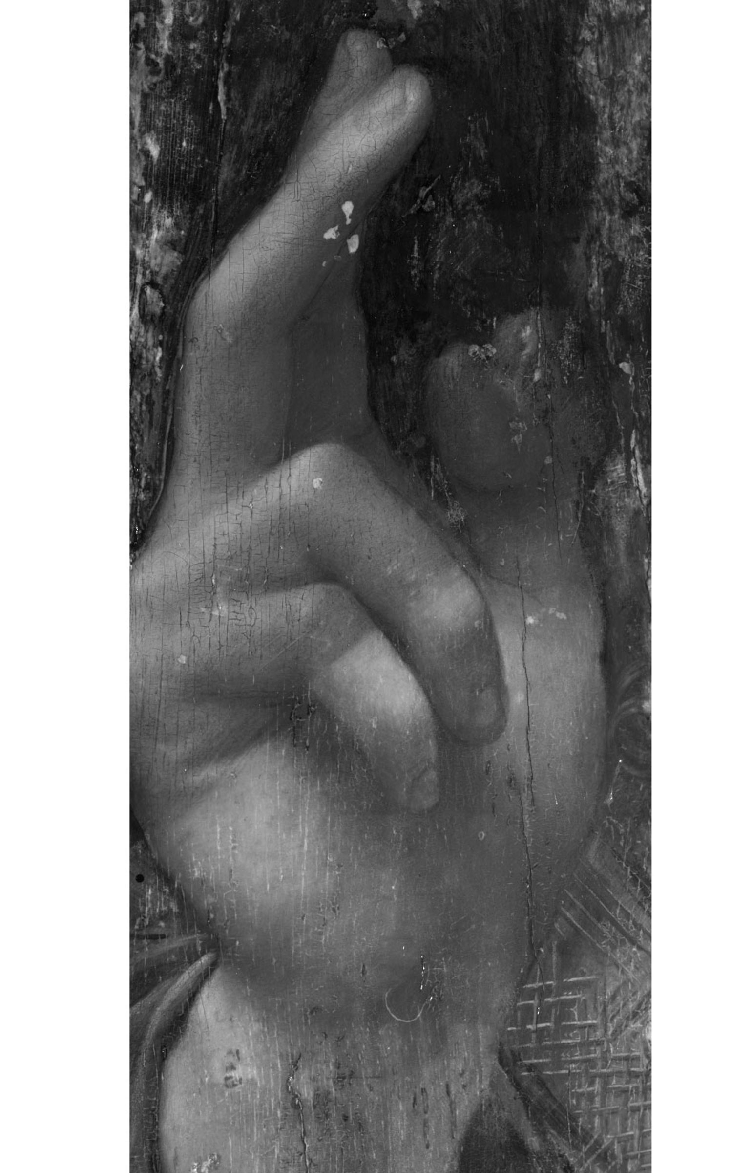 紅外線成像技術揭示構圖中祝福手勢的拇指比最終畫作較為豎直