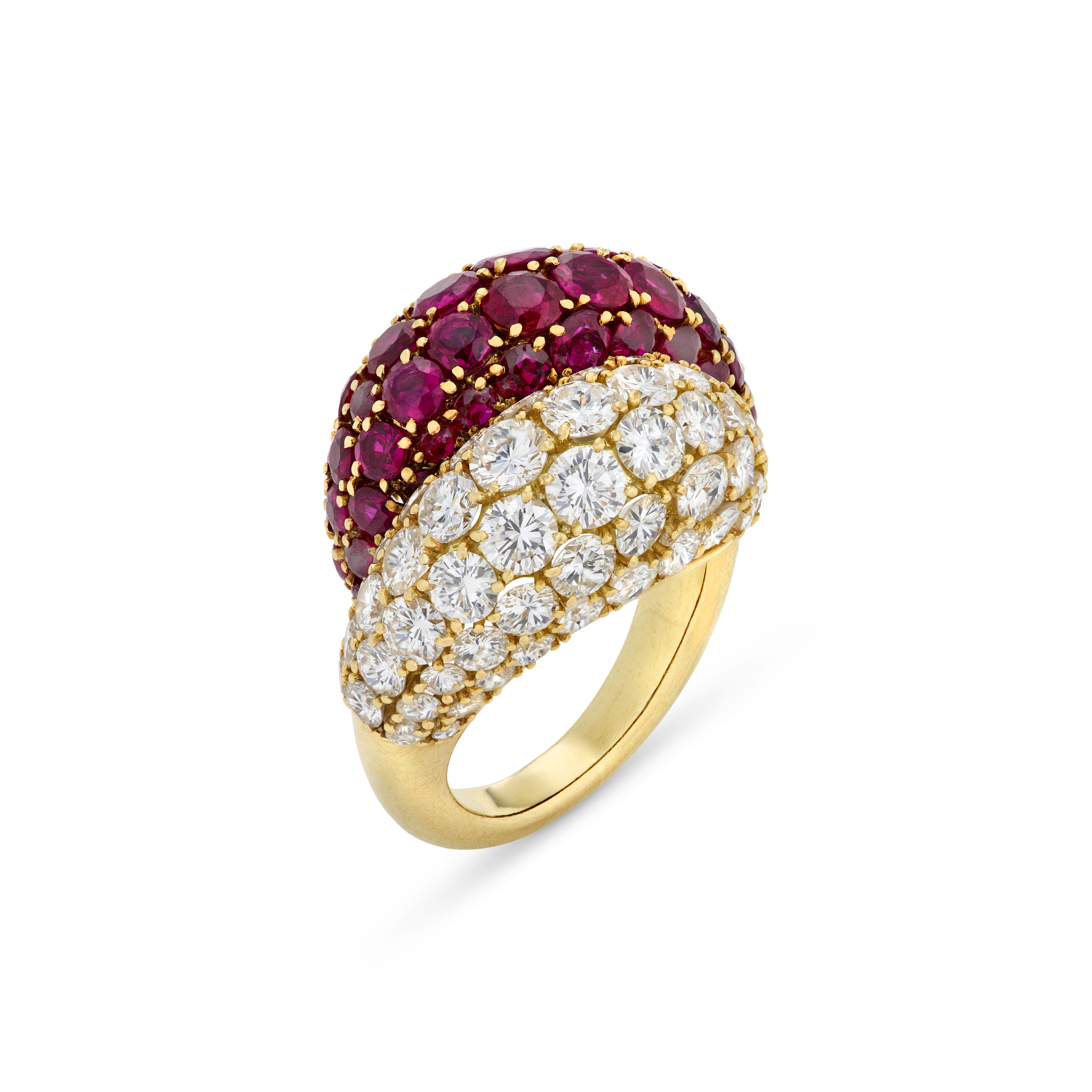 Van Cleef & Arpels ruby and diamond ‘Double Boule’ ring, c. 1975. Estimate: $30,000-50,000. Offered in Jewels Online on 9-19 March 2026 at Christie’s Online
