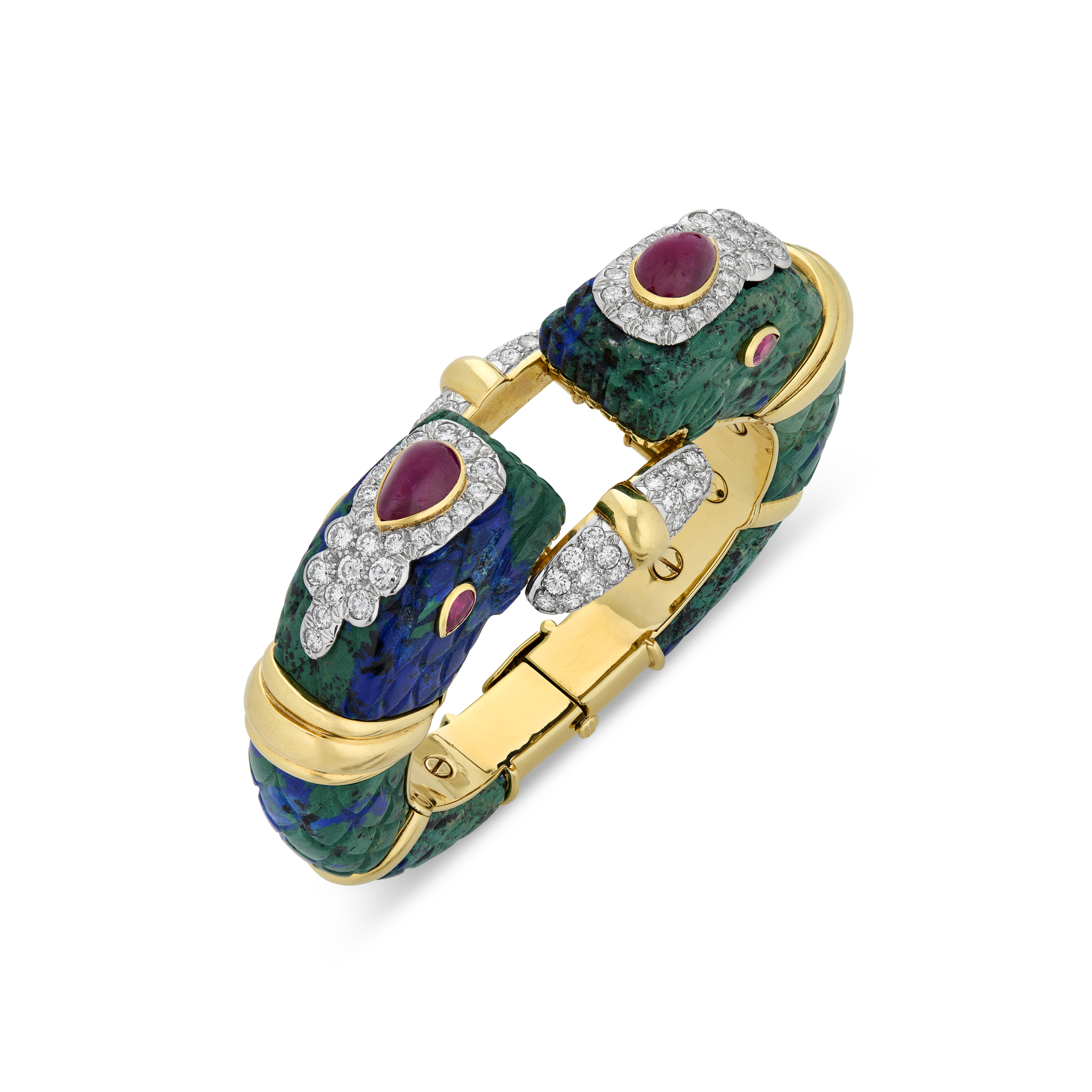 David Webb, Azurmalachite, ruby and diamond ‘Chimera' bracelet. Offered in Jewels Online on 9-19 March 2026 at Christie’s Online